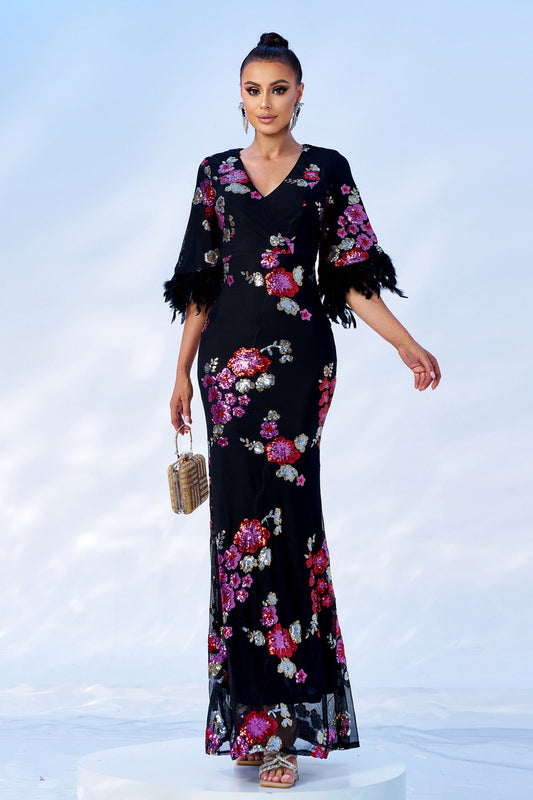 V-neck Velvet Floral Maxi Dress