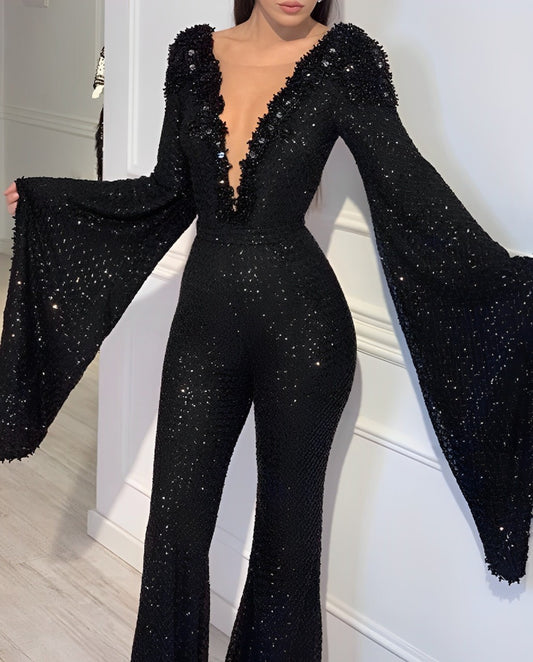 V-neck mermaid sequin dress