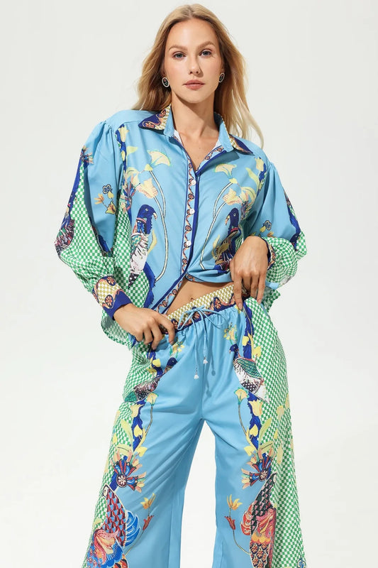 Boho Lantern Sleeve Lapel Buckle Suit