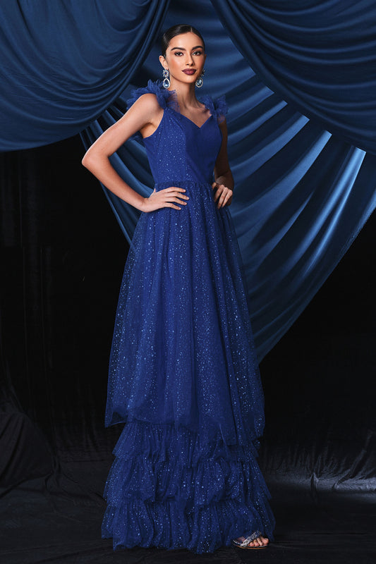 Blue Sequins Tiers Party Dress