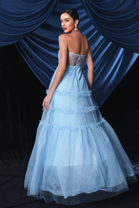 Blue Tulle Strapless Party Dress