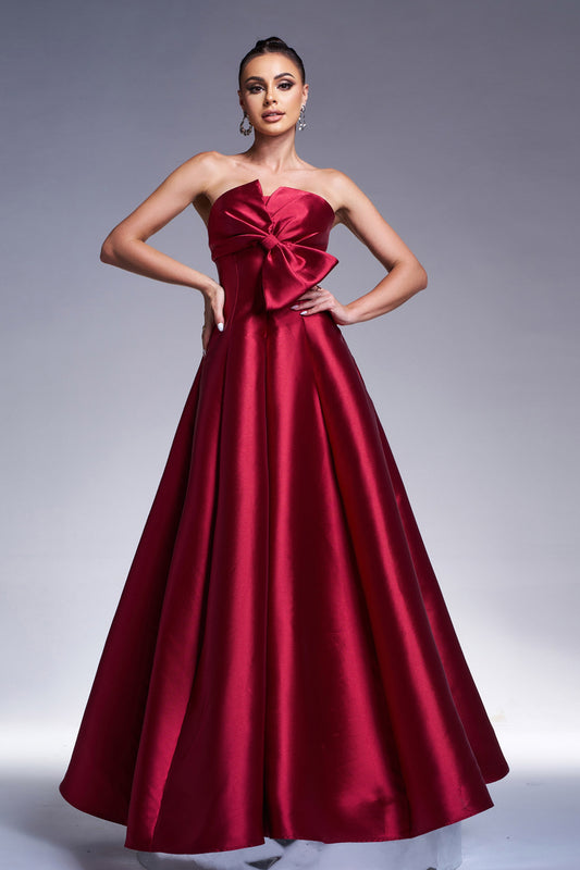 Bow Satin Maxi Dress In Burgundy