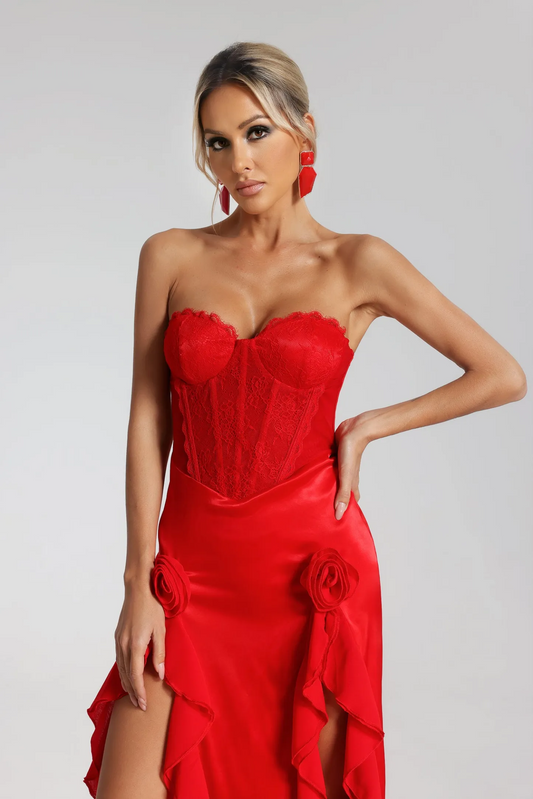 Tove Off Shoulder Velvet Maxi Dress - Red