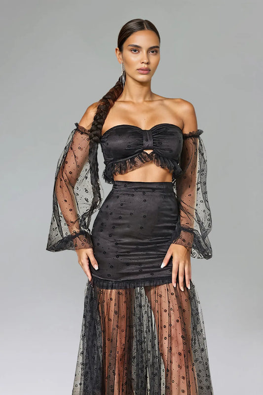 Dekia Lace Off Shoulder Mini Skirt Set - Pink
