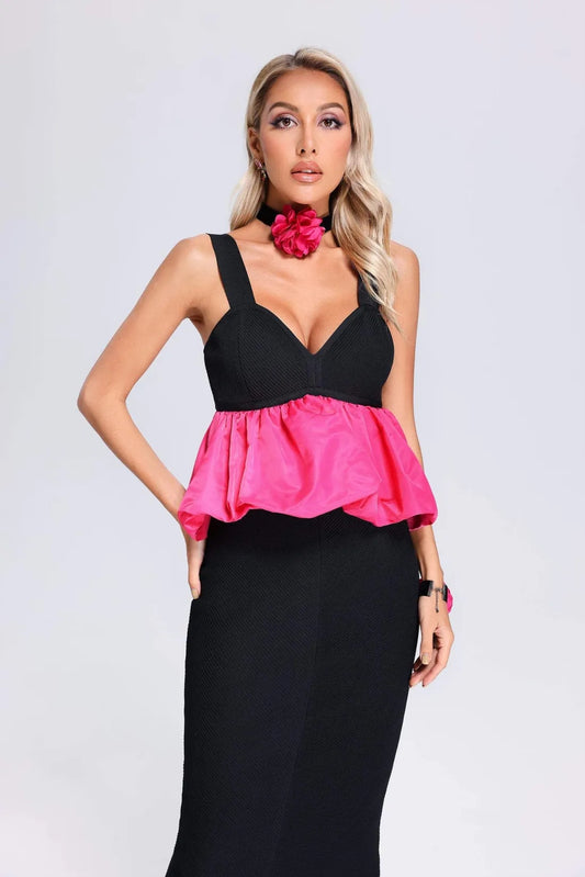 Makala Flower Fishtail Maxi Bandage Dress
