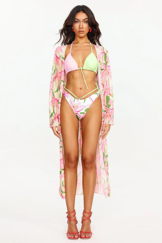 Zarinny Flower Print Bikini Three Piece Set