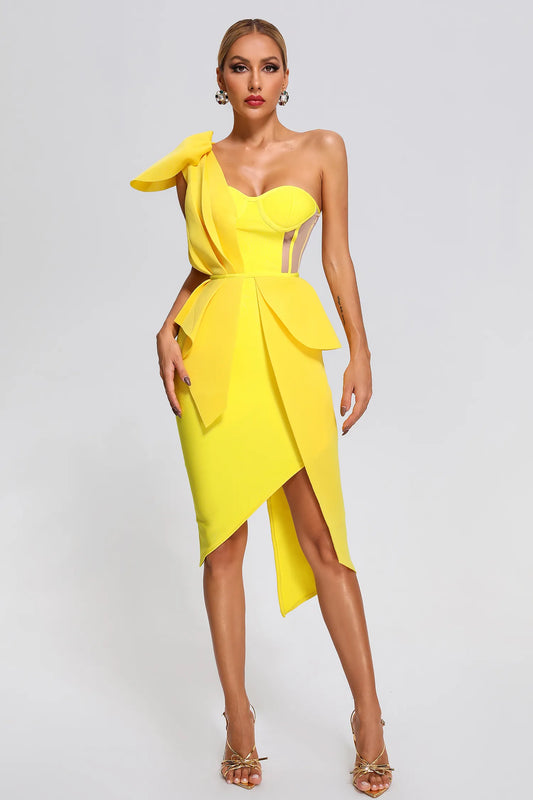 Yellow Beaded Short Top Maxi Dress Two-Piece Set