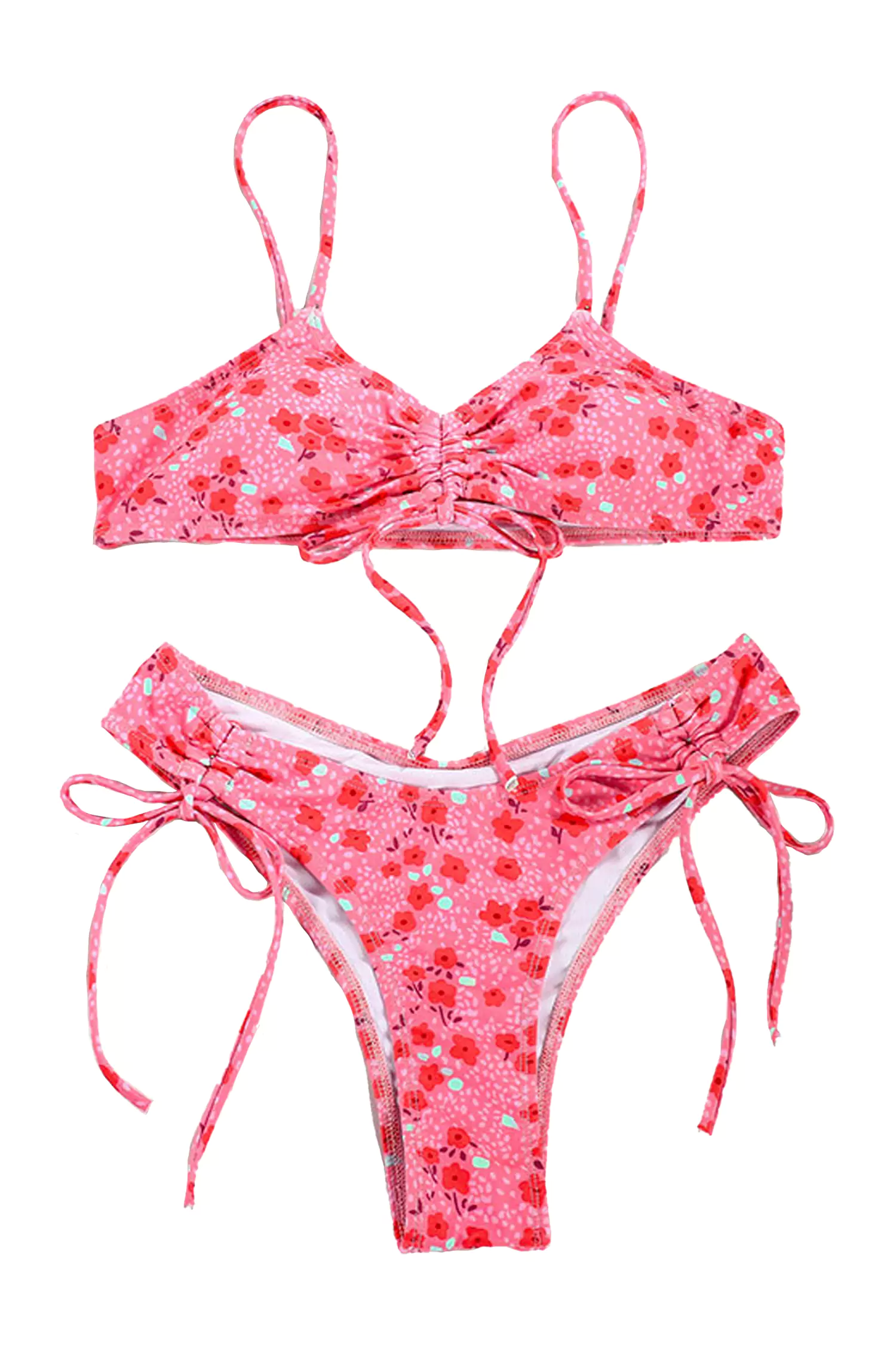 The Emmeline Pink Bow Tie Bikini is a captivating two-piece swimwear for the bold and confident women. Its flirty design features a fashionable bow tie and a mesmerizing red floral print. Made with high-quality materials, this bikini ensures both comfort and style, making it perfect for any beach or poolside occasion.