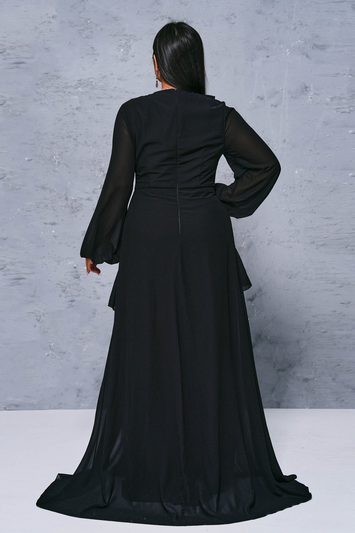 Show off your curves and elegance in this Plus V-neck Ruffled High Split Formal Dress! Perfect for any formal occasion, this dress features a flattering V-neckline and delicate ruffled details. The high split adds a touch of drama and movement. Make a statement with this dress and be the center of attention!